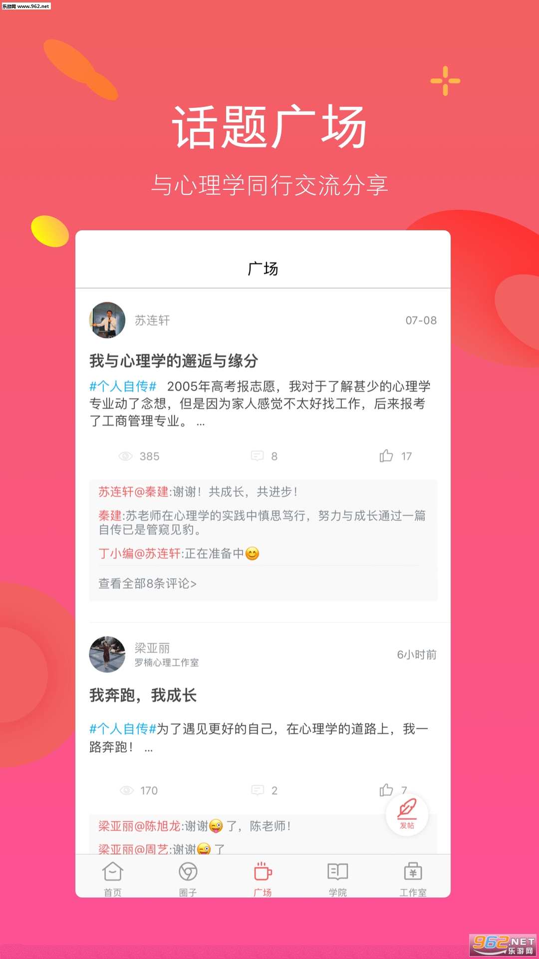 对感情、职场、婚姻、亲子教育等等有困惑?来和心理吧,这里有最专业的咨询师帮您拨开迷雾,答疑解惑,帮助心理成长,成就更完美的自己。