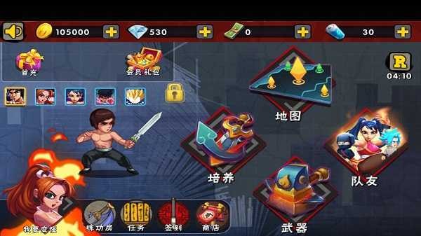 作为一款富有创新的中国功夫为主题的动作格斗类的手游,功夫激战3为玩家还原了众多经典的功夫英雄,玩家能学习并不断提升自己的功夫,在格斗场上展现自己酷炫的招数,还能随时变换角色。
