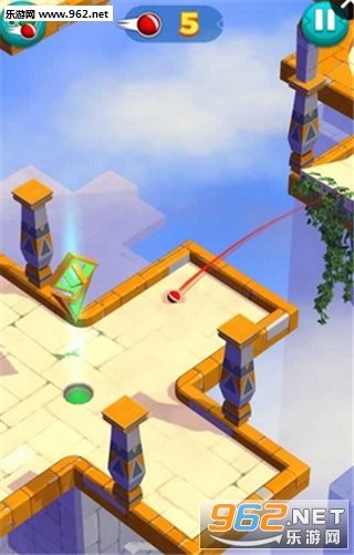 1、玩家在游戏中将以类似的打高尔夫的方式在神庙环境下弹射一颗滚动的小球;