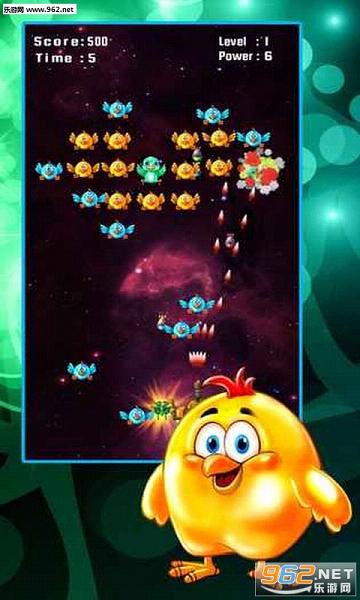 这是一个经典的射击游戏。你的任务是拯救来自袭击鸡群的银河系。你将控制一辆飞行器,保护地球免受一群鸡的入侵。