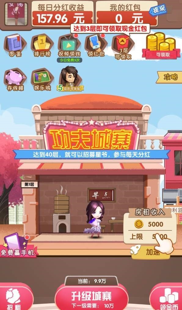 疯狂收租婆红包版2026,十分有趣的分红赚钱游戏,q版形象设计,游戏中会有很多的空闲房子出租,每次出租出去就会获得金币奖励,游戏画风清爽明快,玩家在游戏中需要不断的利用金币升级房子,等级越高获得的红包就会越多哦,喜欢这款游戏的小伙伴快来下载吧