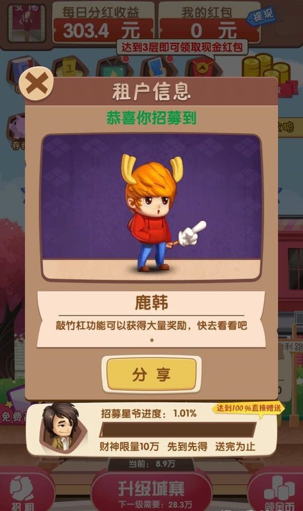 1.放置模式的经营游戏,将你的大厦快点建立起来,以后可以每天都不用工作了。