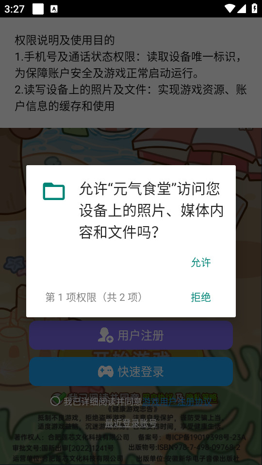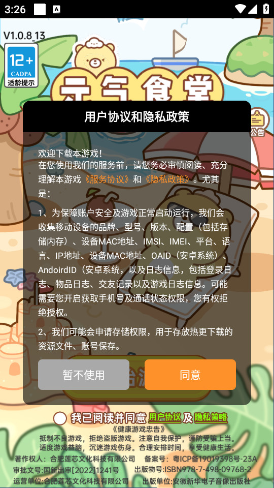 在本页面内下载安装并打开元气食堂游戏,点击同意