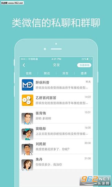 交友:与医生和患者建立好友关系,进行私聊和群聊