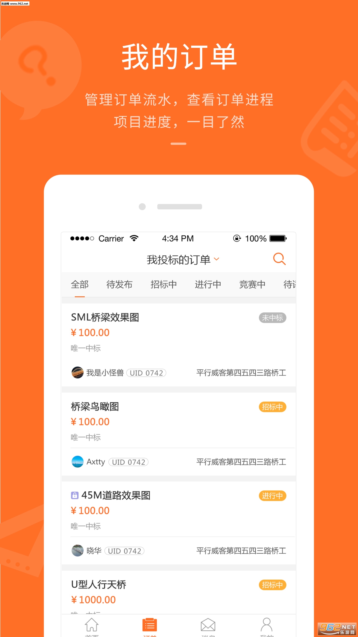 2.我的订单——管理订单流水,查看订单进程,项目进度 一目了然