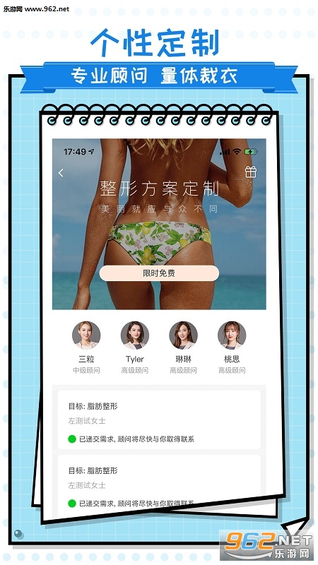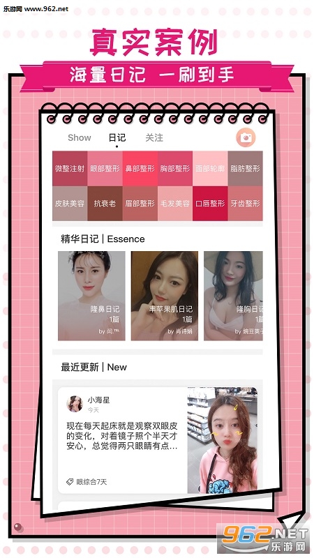 专为爱好美的小伙伴打造的一款在线服务软件,能够让你直接利用手机就能了解各种类型的整容案例,了解相关的价格,项目等等,快下载吧!