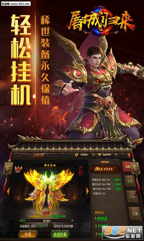 《屠城归来》经典还原,热血复古手游。激战世界BOSS,掉落无绑定装备,无尽财富等你创造;永不离线经验不断,让每个玩家都能时刻体验游戏。众多趣味玩法,让你每时每刻嗨不停!