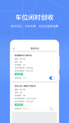 您可以在平台发布您的停车位,分时共享,赚取收益。