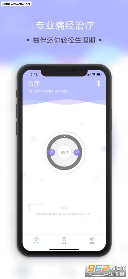智能穿戴,智能穿戴设备绑定,实现在线痛经治疗;知识科普:海量痛经知识,让你了解痛经并通过智能穿戴产品轻松实现痛经治疗;经期管理:通过AI算法和大数据分析量身为您打造一套经期管理方案。