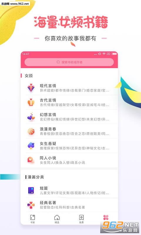 囊括知名女频作家,收录数十万知名女频书籍,涵盖言情、穿越等各大女频分类。书籍种类繁多,开阔女性阅读视野,不仅仅关注梦想,在生活经验、人文精神等智慧层面给女性更多关照。