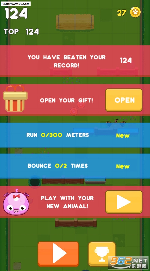 一款非常有趣的休闲街机游戏,通过为动物指定方向躲开障碍,但是改变行进路线是有次数的,你需要借助两边的墙壁进行反弹尽可能少的使用,这样你才能走的更远。