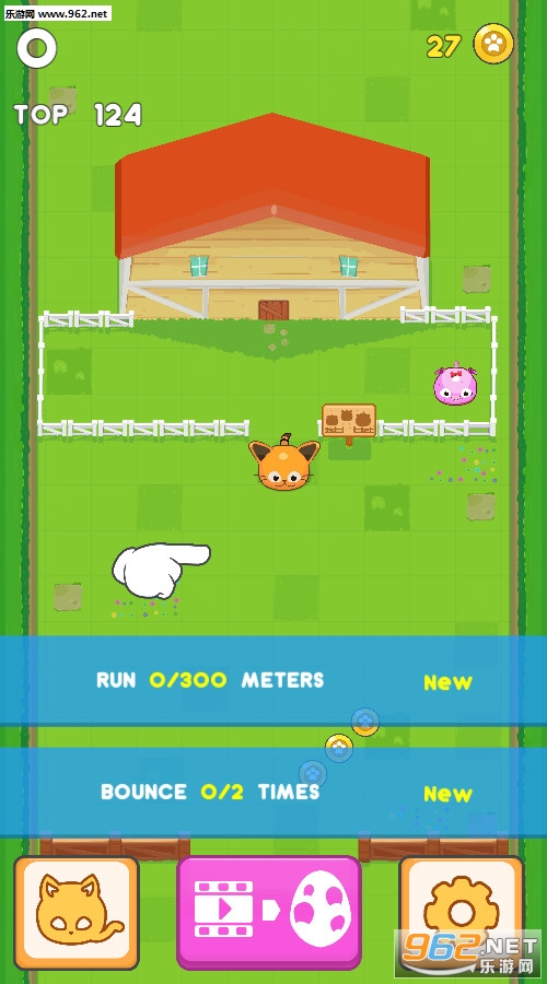 《农场动物历险记》是一款卡通风格的休闲街机游戏,游戏中玩家将操作一只小动物在农场中进行冒险,你需要通过点击来改变动物的行进方向,不然就会撞到东西,就得重头开始,游戏的玩法简单有趣,积累了一定的分数以后就可以打开宠物蛋,解锁新的动物,赶快下载体验吧!