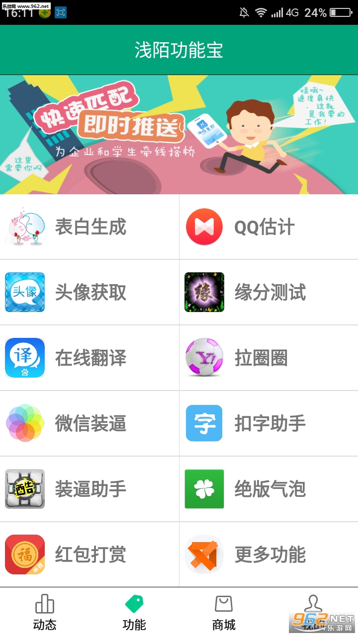 浅陌功能宝是一款功能强大的手机盒子软件,软件拥有表白生成,缘分测试,装逼助手,绝版气泡等等诸多功能,可帮助用户朋友更好更轻松的玩转手机。