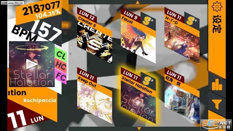 画面整体UI属于凌乱美的,可能第一眼不是很规整觉得骚气的乱不够唯美,然而上手两首曲子就会觉得和曲风非常搭调,曲子都是以动感旋律为主的。