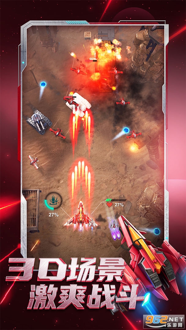 从森林、山川、荒漠、海洋到宇宙空间,面临巨型坦克、重装直升机、无人机母舰甚至巨大机械怪物的威胁,驾驶你的战机击溃他们! 影视级写实的画面和代入感极强的音效,带你身临其境感受未来科幻大战。