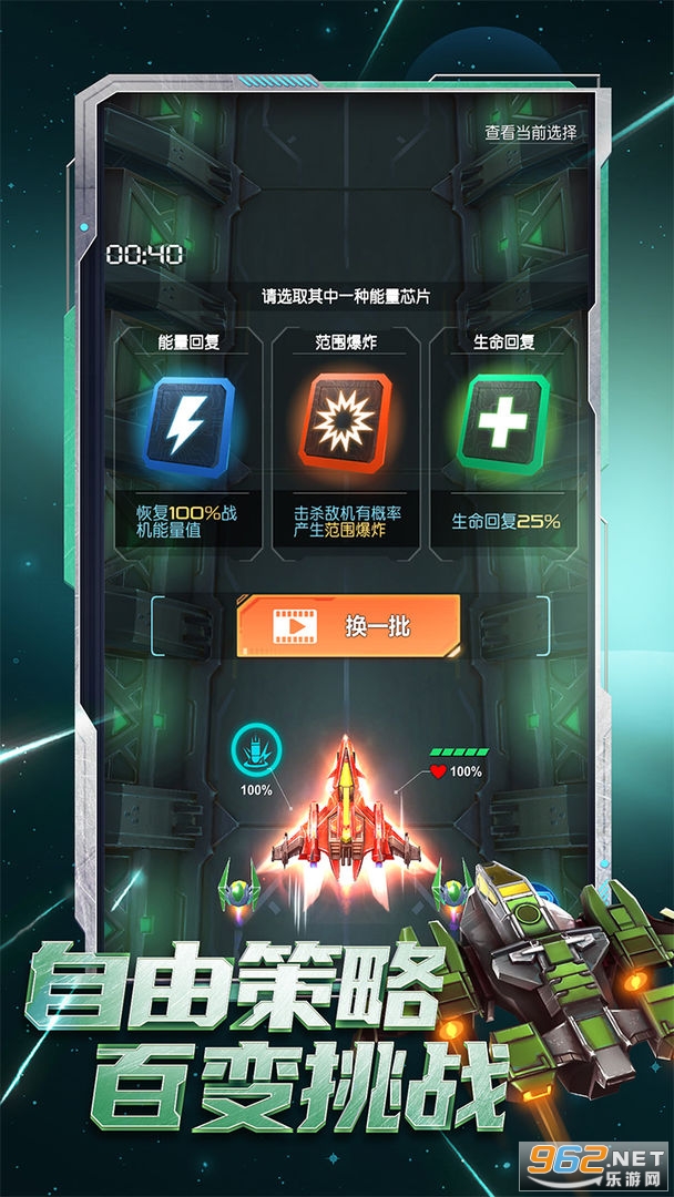 6架不同定位的战机、12种弹幕华丽的僚机、108种各具特色的零件,任意搭配出上千种策略,灵活应对来自外星的突袭。