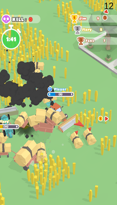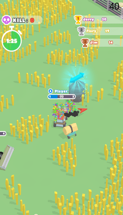 卡通竖版的农场收割竞技大挑战游戏,一场游戏中会有一定数量的选手一起进入,大家可以各显神通,快速的收割游戏里的庄稼,而且还能收集随机的道具来提升自己的能力,比如加快收割机的速度、扩大收割机的收割范围等,但是大家也要小心避免撞到其他玩家的收割机,别白白浪费了之前的努力。