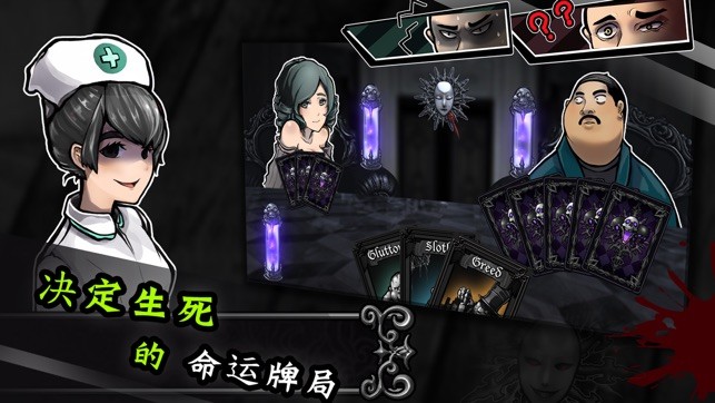 2、需要与不同的对手进行卡牌游戏对战才能逃脱出去,每个人都似乎有着一些阴暗面;