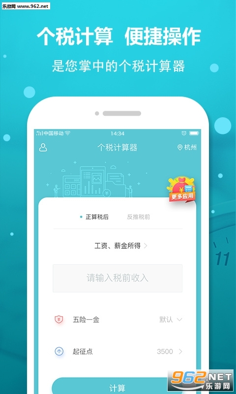 个税计算器是一个非常不错的掌上计算器平台、在这里丰富的计算功能等你选择使用、从而轻松的计算出你想要的数据内容、可以说个税计算器是值得下载使用的计算器小助手、在这里你将体验到全新的计算器玩法。