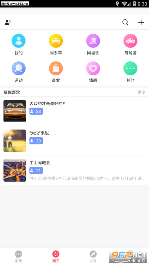 非常不错的交友互动软件,比如喜爱汽车的可以组建一个汽车圈子,喜爱运动的也可以组建一个运动圈子等,将众多兴趣相投的朋友聚集在一起,喜欢的朋友可以下载试试。