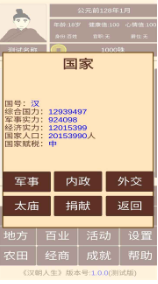 汉朝人生游戏中玩家将模拟成为汉朝时代的中的一员,您有很多的路线可以选择,您可以在汉朝时代种田,也可以经商,还能够成为官员或者皇帝,您需要制定很多的策略,让这个朝代在您的统领之下变得越来越好。