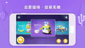 4、搭建、编程、玩耍全不误,配合Noova编程启蒙机器人系列,孩子除了根据3D动画搭建多种形象,还可以跟随内置的编程小任务学习图形化编程指令,也可以创造自己的编程动作。