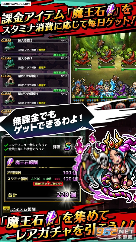 战斗系统上,虽然是点击技能的简单玩法,但发动技能的时机会给战况带来巨大的变化,让战斗充满了战略性。而且技能需要由玩家进行搭配,可以享受到这些战略性带来的乐趣。另外,还有为了能让玩家更愉快地进行游戏,游戏玩得越久就能够得到“课金货币”作为奖励。