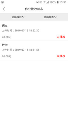 (3)批改状态:家长端用户可通过批改状态查看已上传的所有作业的状态,已批改完成的作业可以查看批改结果和作业批改反馈报告。