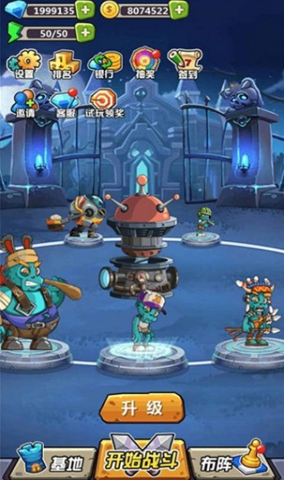 1、控制你的僵尸军团去击败入侵敌人,合理布阵排版进行对抗;