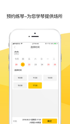 1、app自助约课,随约随上,摆脱固定上课时间,学琴更自由。