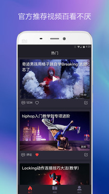 街舞中国APP旨在推动全民街舞,为街舞爱好者提供一个良好的学习平台,让街舞成为大家生活中一项娱乐健身运动。