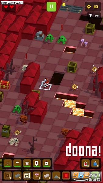 在这个方块和像素结合的世界中,你需要控制小女孩Doona闯过重重难关。寻找并收集理想的物品材料来制作武器。游戏加入了《我的世界》的材料收集系统和装备打造系统,现在,用你在旅途中收集到的材料,打造各种强力的武器,打败所有敌人吧!
