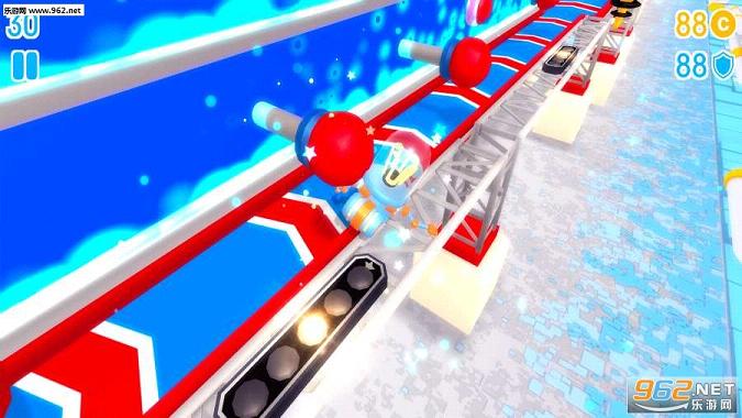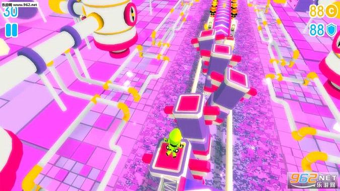 游戏采用了3D画面呈现,我们将来到一个布满各种障碍的赛道,而我们所控制的角色则是一个个造型各异的机器人,通过控制它们在跑道上奔跑,并且要躲避各种障碍,冲向最后的终点。游戏3D立体效果十足,赛道背景的设计非常华丽,画面色彩十分鲜艳,不管是障碍众多的赛道,还是我们的机器人,都充满了青春亮丽的颜色,让玩家们眼前仿佛有一道璀璨星光大道一般,让我们的心情也跟着热情洋溢起来。