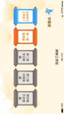 《婷婷三字经app》是一款以三字经为核心的学习软件,用户能够通过歌曲等形式来对三字经进行学习,通过故事来理解三字经中的各种内容,文字可以自由的切换简体繁体,让孩子们能够进行国学启蒙。有需求的话就快来下载吧!