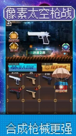 2、用枪一起战斗,这是很有趣很精彩的游戏过程,像素太空枪战一起来试试吧!