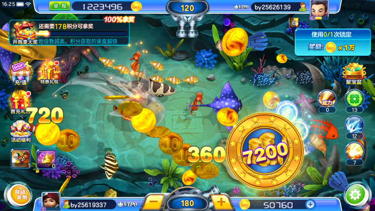 1.真人联机打鱼,万人同时在线,邀请好友同桌打鱼。