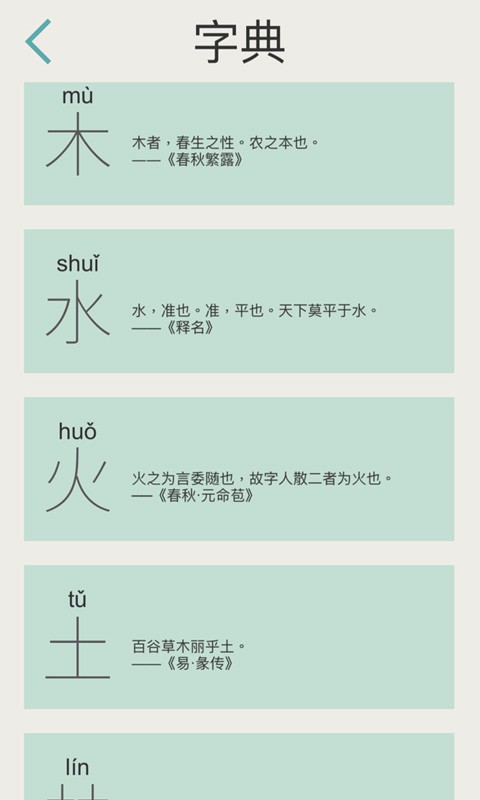 木水火土是一款非常好玩的休闲益智内游戏,游戏借助中国古老文字来进行特色组合,非常类似于经典的2048游戏,该游戏题材新颖,玩游戏的同时也传承了中国文字,非常有意义,游戏关卡内容非常丰富,非常好玩,作为宝宝的一款启蒙游戏也是非常不错的选择,喜欢这款游戏就快来下载体验吧!