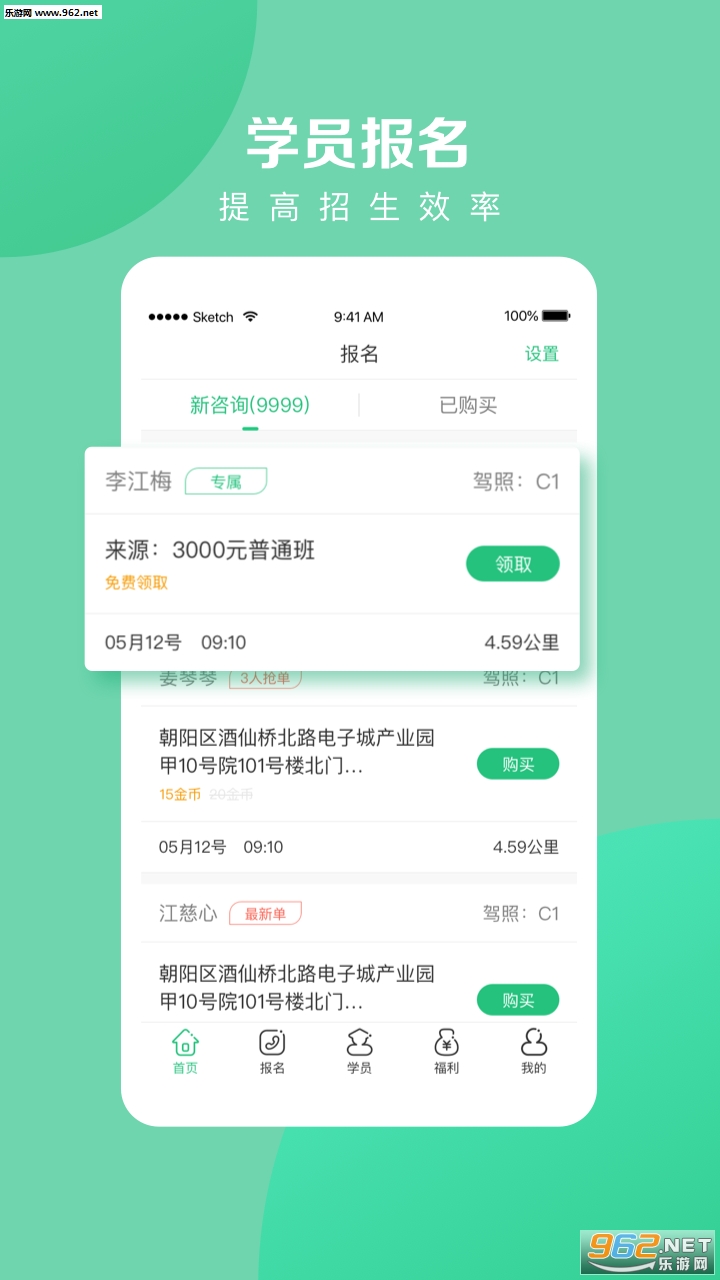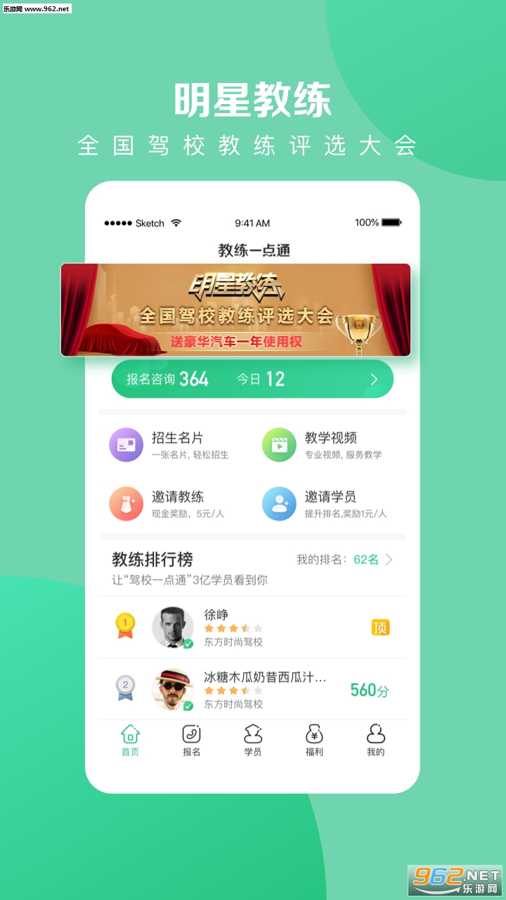 2.招生名片:属于自己移动招生名片,建立自己的驾校品牌;