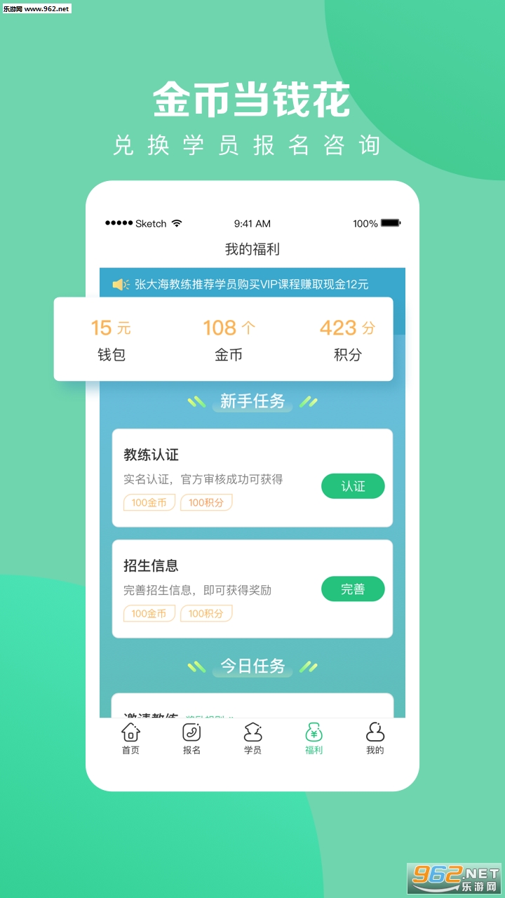 4.福利:赚取金币当钱花,兑换学员报名咨询;