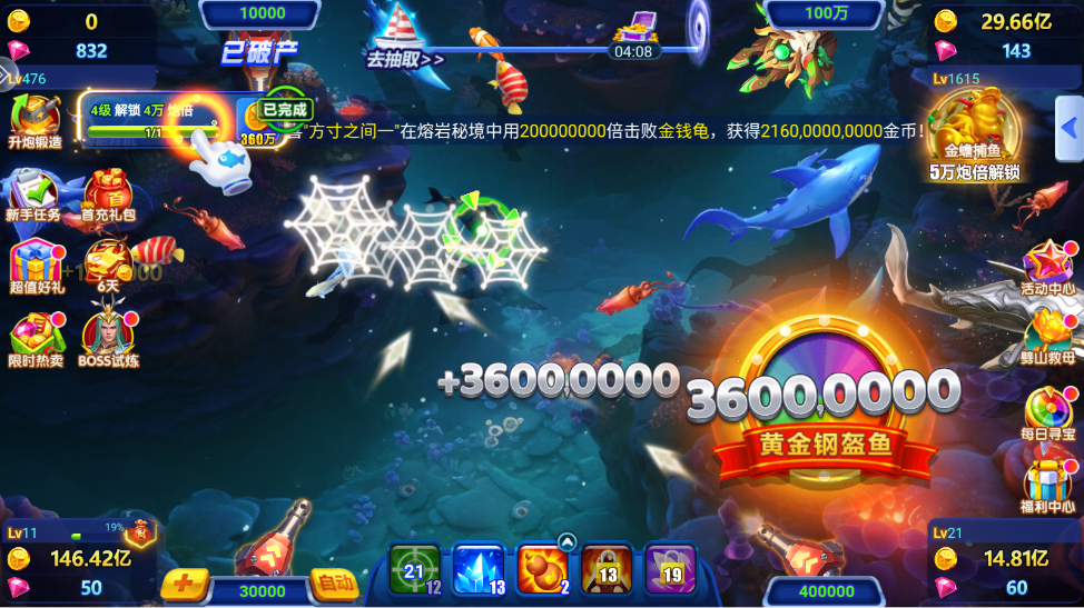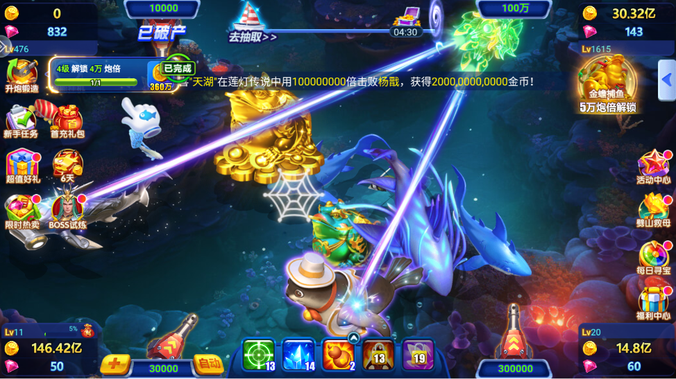 竞技:多玩家同时在线,真人角逐的捕鱼游戏。