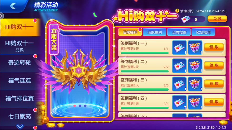 ·每日免费大抽奖,各种奖品爽不停