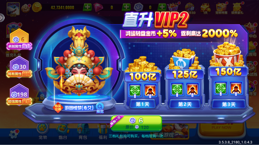 4、多重花样捕鱼,体验百种玩法任意选择进入喜欢的赛场竞技。