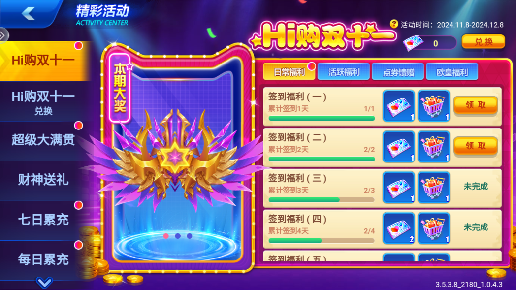 3、经典奖项供大家领取,金鱼、三大、四大、五大祝福阶段都有着丰厚的奖励。