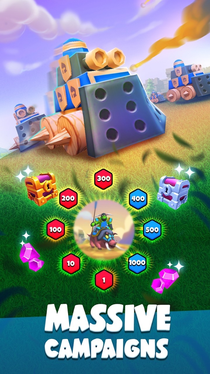 3、合并您的单位以变得更强大并击败攻击者,发现新兵加入你的队伍并提高你的火力。