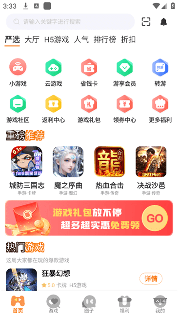 一款全新的专注于游戏的分享平台,该软件主要为玩家们提供单机游戏、手机网游及软件的推荐与下载,并且在这里玩家们可以领取到各种游戏礼包。