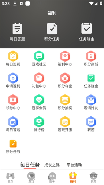 通过每日任务、成长之路、平台活动等方式获得积分。
