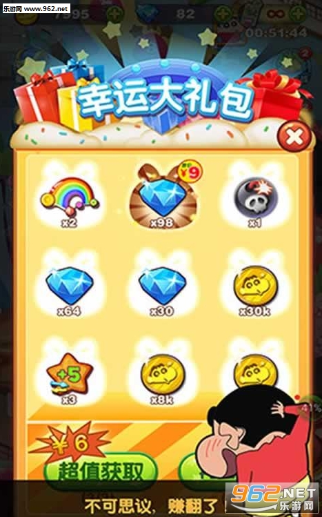 《蜡笔小新糖果世界手游》这是一款画面十分Q萌可爱的消除类游戏,游戏拥有吩咐的游戏关卡等玩家们来挑战,游戏每天还有幸运大礼包领取哦,喜欢玩消除游戏的朋友赶紧来乐游网下载吧!
