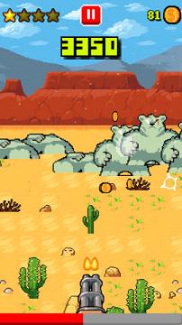 《一击牛仔安卓版》是一款复古像素风格的射击手游,游戏中玩家化身为一个西部牛仔,你的武器就是一把左轮手枪,你必须一击必杀,不然强盗们可不会对你心慈手软。击杀强盗后可获得金币,金币能用来强化属性和购买各种武器。