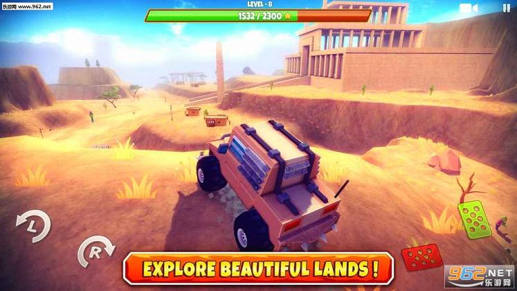 离开市区,探索这个危险的僵尸世界,这里有多种的挑战在等着你!以越野车,怪物卡车,高耗油六轮车等等来征服这个地方吧!