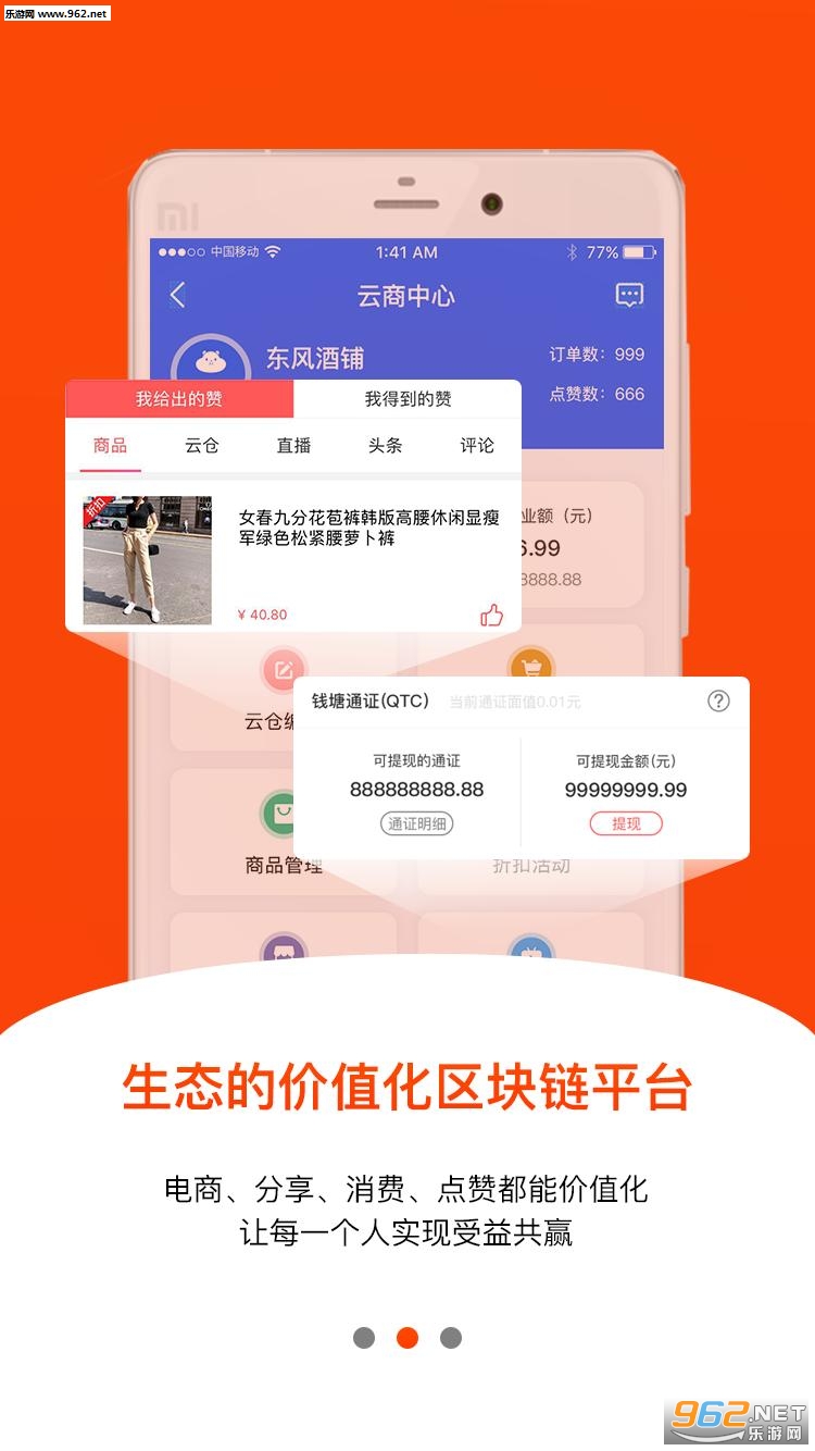 《钱塘云仓app》是一款专注于区块链技术研发与社群分享的电商生态链建设平台,以建设开放自由共创共赢的电商利益体为愿景,是一个您值得信任的新零售社交平台。钱塘云仓app提供大牌美妆,食品保健,精品服饰,家居生活,供应链直供,给你全新购物体验。